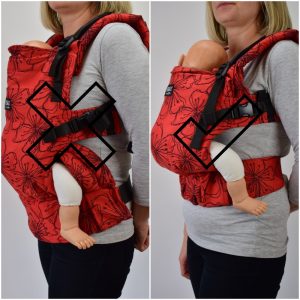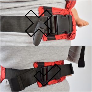 Make sure that the panel supports the back of the baby and is not too loose. If needed, tighten the buckles on the panel.