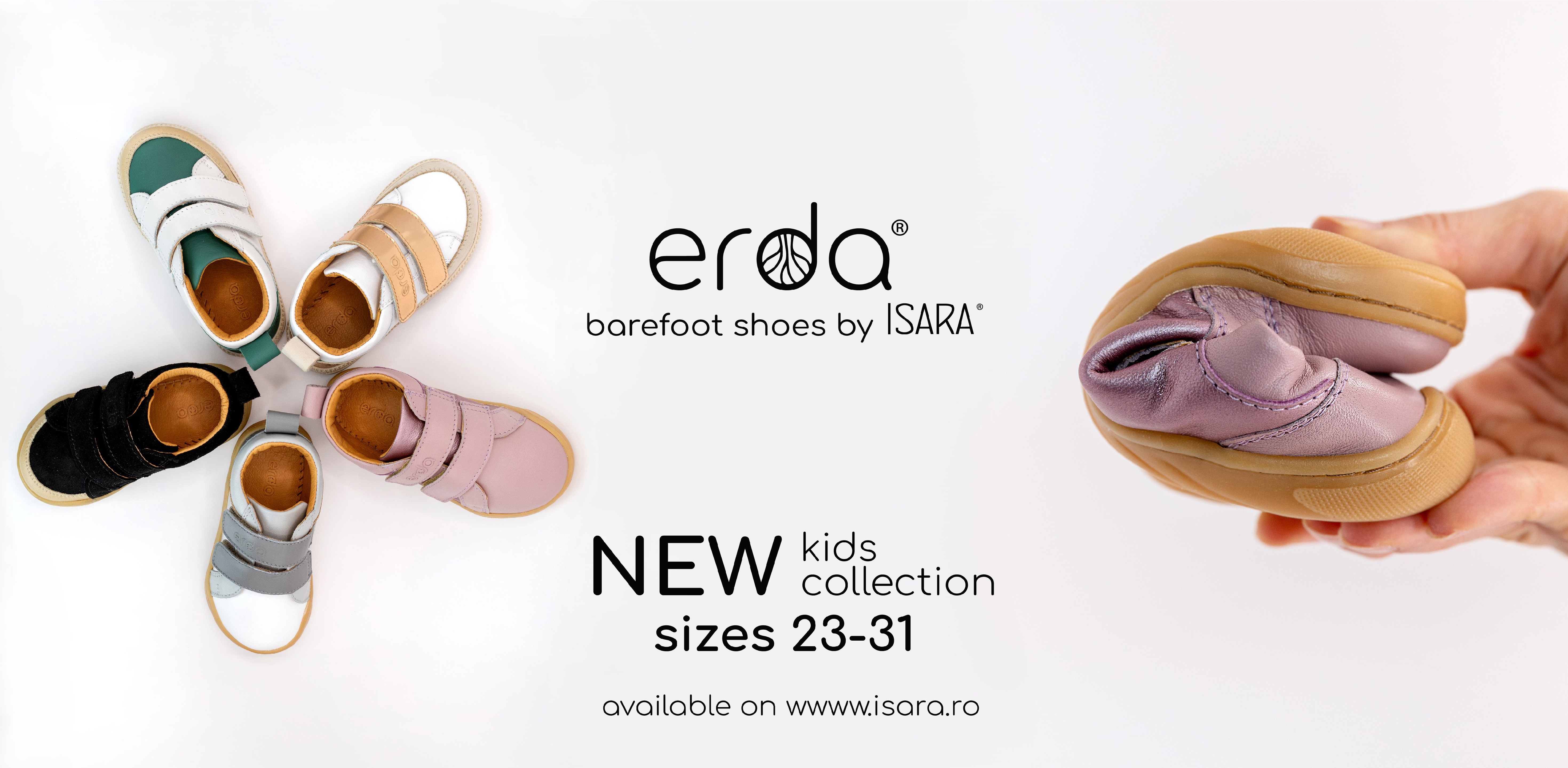 ERDA shoes are barefoot leather shoes, suitable for both indoor and outdoor wear, designed to support the natural way children walk. With a thin, flexible, zero-drop sole and anatomically shaped fit, they allow feet to move freely, helping develop strong muscles, proper posture, and balance. No stiff reinforcements, no restrictions—just pure freedom, as nature intended.