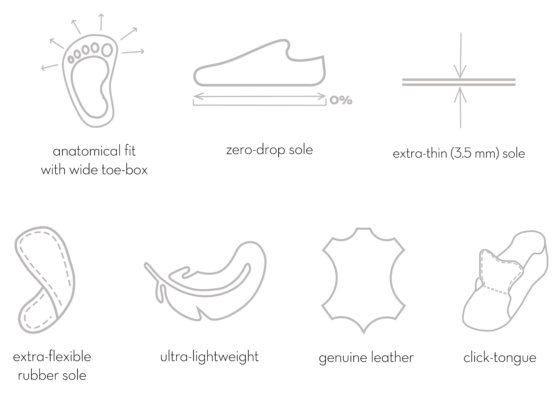 -Very thin (3.5 mm) sole made of extremely flexible, non-slip rubber