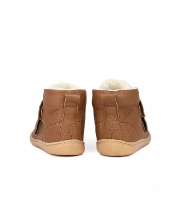 We use soft, breathable natural leather, gentle even on sensitive skin. Inside, a 100% natural wool lining keeps feet warm, cozy, and comfortable throughout the cold season.