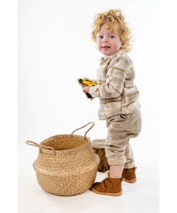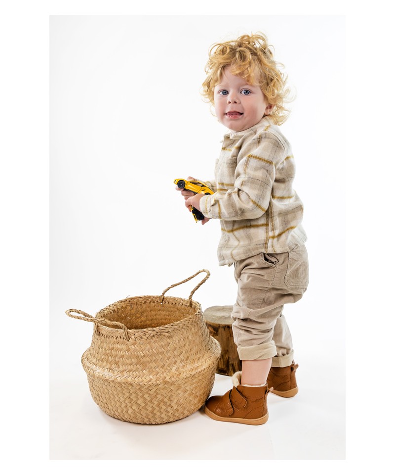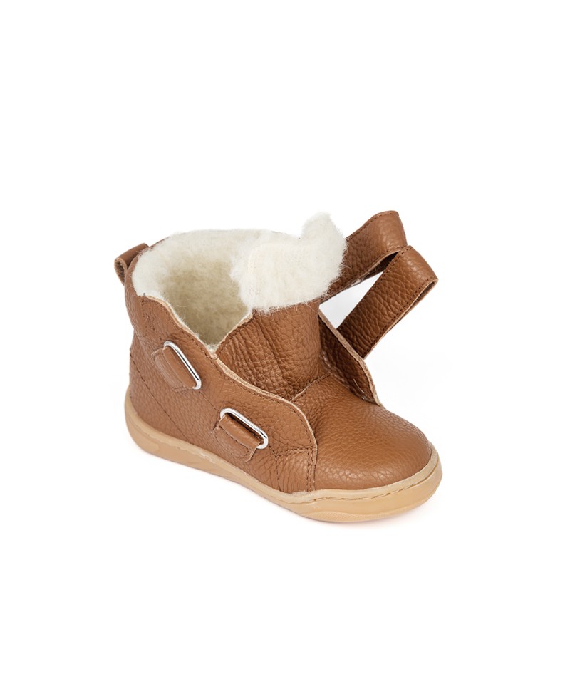 Natural wool lining, warm and cozy, keeping little feet comfortable in chilly weather.