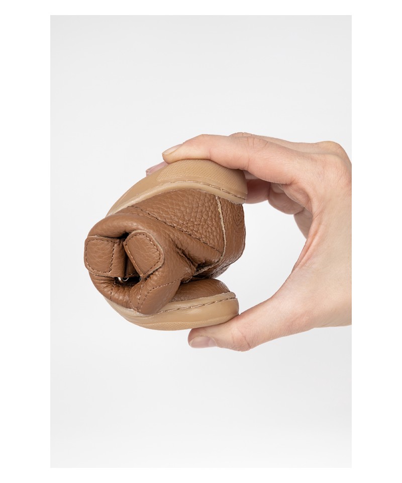 Carefully constructed to preserve the leather’s natural water resistance. The stitched tongue prevents humidity and dirt from getting inside, so little explorers can play freely and safely.
