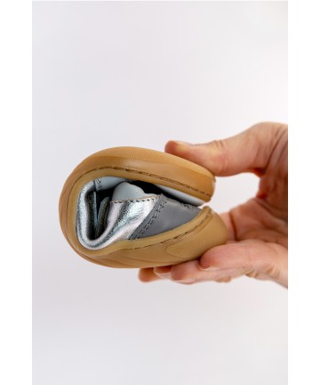 Folosim piele naturala moale si flexibila, cu proprietati exceptionale de respirabilitate. Aceasta asigura un confort sporit chiar si pentru copiii care au pielea sensibila. Captuseala interioara este de asemenea 100% din piele, fiind fina si placuta la atingere.