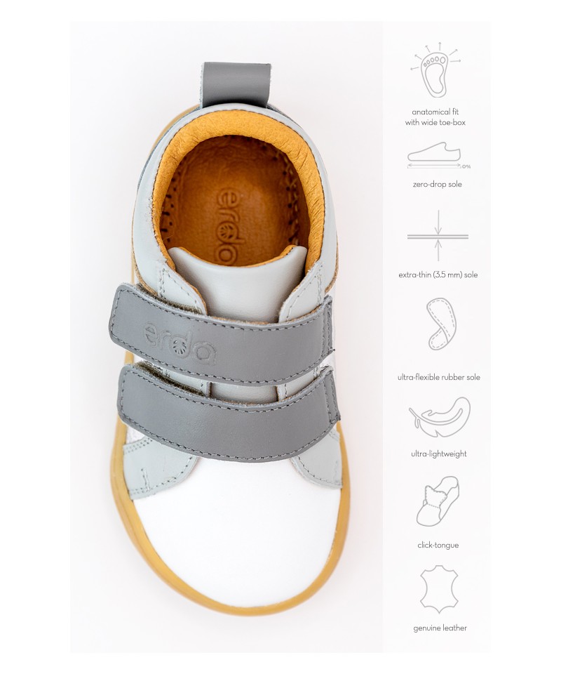 Copiii invata mersul prin simturi: textura solului, greutatea corpului, echilibrul. Pantofiorii barefoot ERDA pastreaza senzatia mersului descult, dar adauga un strat de protectie – exact cat trebuie. Talpa este subtire, de 3,5 mm, complet flexibila si dreapta (zero drop), ceea ce permite o postura naturala, activarea corecta a muschilor si o miscare fireasca a gleznei.