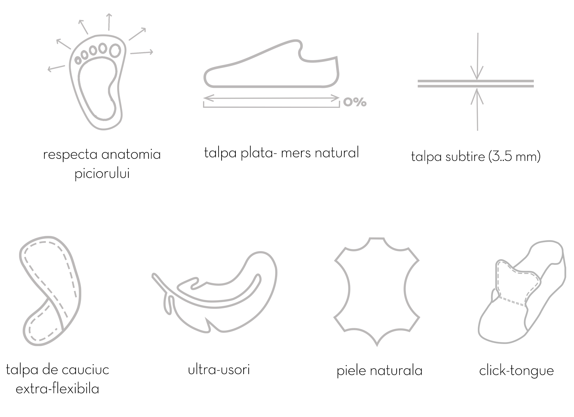 Copiii invata mersul prin simturi: textura solului, greutatea corpului, echilibrul. Pantofiorii barefoot ERDA pastreaza senzatia mersului descult, dar adauga un strat de protectie – exact cat trebuie. Talpa este subtire, de 3,5 mm, complet flexibila si dreapta (zero drop), ceea ce permite o postura naturala, activarea corecta a muschilor si o miscare fireasca a gleznei.
