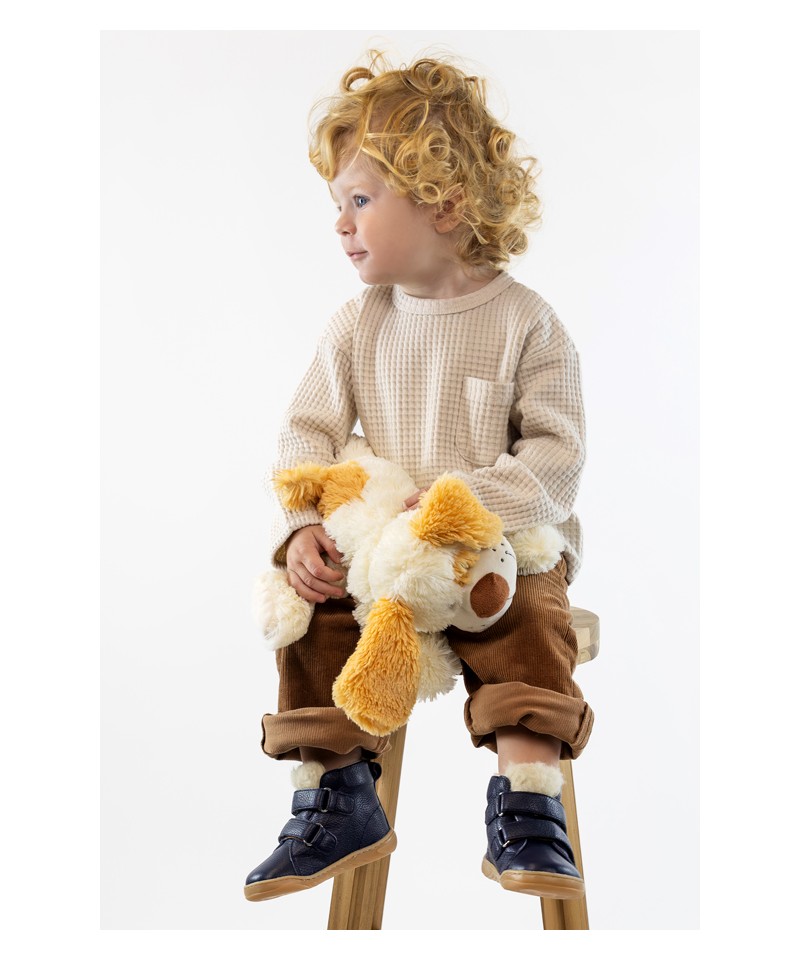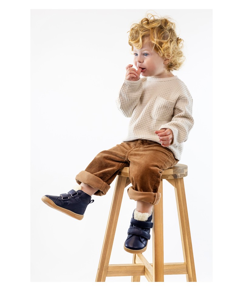 ERDA Stilo barefoot boots păstrează bucuria mersului desculț, oferind în același timp protecția blândă de care au nevoie pașii mici în zilele reci.